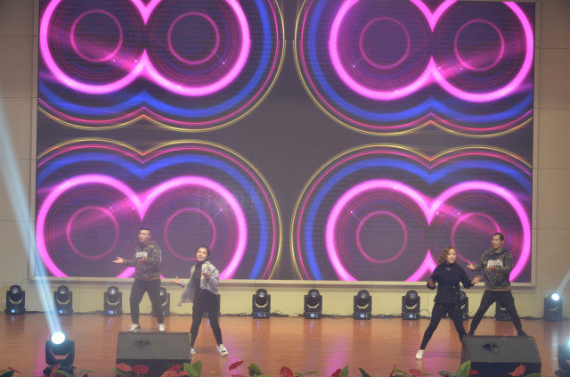 今年的迎新文藝匯演有三個顯著特點:一是員工和員工子女參與人數有所增加;二是語言類節(jié)目均為公司員工原創(chuàng),舞蹈類節(jié)目的員工原創(chuàng)占比達一半以上;三是現(xiàn)場三次微信互動搖獎,使現(xiàn)場觀眾幾乎悉數參與到互動當中,增加了晚會的親和力。