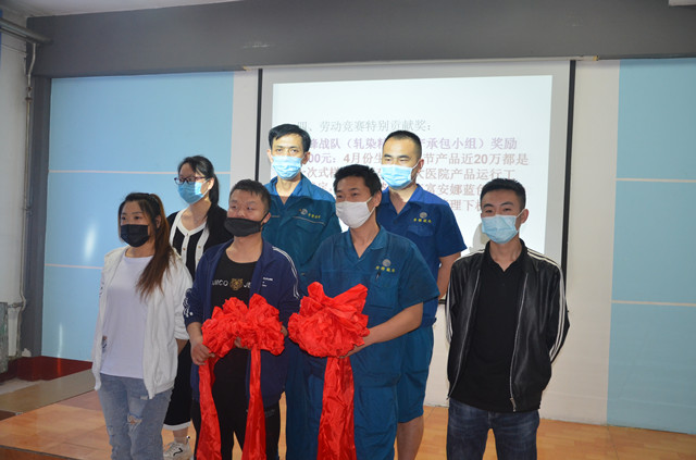 會(huì)上,車間對(duì)4月份競(jìng)賽獎(jiǎng)勵(lì)做了分配,A梯隊(duì)序列:第一名火焰戰(zhàn)隊(duì)(特整精益生產(chǎn)承包小組)118.42分,獎(jiǎng)勵(lì)2500元;第二名烽火狼戰(zhàn)隊(duì)(340絲光精益生產(chǎn)承包小組)117.57分,獎(jiǎng)勵(lì)1500元;第三名尖刀戰(zhàn)隊(duì)(320拉幅精益生產(chǎn)承包小組)112.08分,獎(jiǎng)勵(lì)1000元;第四名精英戰(zhàn)隊(duì)(卷烘精益生產(chǎn)承包小組)104.02分,獎(jiǎng)勵(lì)1000元;第五名烈火重生(360拉幅精益生產(chǎn)承包小組)102.05,獎(jiǎng)勵(lì)1000元。B梯隊(duì)序列:電氣小組獎(jiǎng)勵(lì)1500元,描稿小組獎(jiǎng)勵(lì)1000元。4月份車間好員工信用度前十名:李建濤、李宜勇、王士波、馬蒙蒙、陳長興、王義明、劉曉斐、毛九濤、董路永、張乃順,每人獎(jiǎng)勵(lì)100元;各戰(zhàn)隊(duì)?wèi)?zhàn)斗力第一名:李海通、王士濤、池連國、韓濱峰、李洋、劉曉斐、靳希芝、聶永斌、楊猛、王偉、陳寶棟、管美艷,每人獎(jiǎng)勵(lì)100元;改善提案(最多者):劉曉斐4項(xiàng),潘運(yùn)濤3項(xiàng),肖澤周2項(xiàng),每人獎(jiǎng)勵(lì)100元。競(jìng)賽特別貢獻(xiàn)獎(jiǎng)的沖鋒戰(zhàn)隊(duì)(軋染精益生產(chǎn)承包小組),獎(jiǎng)勵(lì)5000元;獵人戰(zhàn)隊(duì)(340退漿精益生產(chǎn)承包小組),獎(jiǎng)勵(lì)4000元。精益生產(chǎn)維修與操作一體化小組啟動(dòng)工作方案,在會(huì)上公布并正式啟動(dòng)。