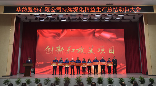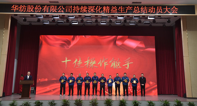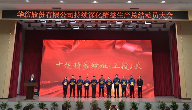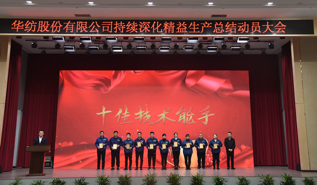 會上,公司董事長盛守祥為2021年度優(yōu)秀團(tuán)隊、勞動模范頒獎;總經(jīng)理閆英山為華紡工匠、十佳精益輪班(工段)長、十佳技術(shù)能手、十佳操作能手、優(yōu)秀員工代表頒獎;質(zhì)量總監(jiān)李風(fēng)明為優(yōu)秀CQI項目、創(chuàng)新攻關(guān)項目、優(yōu)秀精益機(jī)組代表頒獎。公司對在過去一年的“我與效益提升”工作中表現(xiàn)良好的原料運營公司等10個部門給予了通報表揚(yáng);“退城進(jìn)園”暨“智能綠色工廠建設(shè)項目”整體建設(shè)與搬遷,成為“2021-華紡年度感動”內(nèi)容。