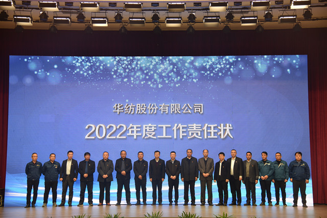 工作責(zé)任狀簽訂儀式上,盛守祥依次與總經(jīng)理閆英山、質(zhì)量總監(jiān)李風(fēng)明、總工程師羅維新、安全總監(jiān)孫中然、財務(wù)總監(jiān)劉水超、法務(wù)總監(jiān)趙玉忠、人力行政總監(jiān)孫玉濤、董事會秘書丁澤濤,服裝面料分公司總經(jīng)理王超、花布分公司總經(jīng)理張力前、家紡分公司總經(jīng)理成如海、面料車間主任曹劍、花布車間主任劉國鋒、家紡車間主任王旭洲、服裝車間主任晁金光、家紡成品車間主任董魯波,簽訂《2022年工作責(zé)任狀》。閆英山分別與王超、張力前、成汝海及各分公司所屬車間主任曹劍、晁金光,劉國鋒,王旭洲、董魯波,簽訂《2022年工作責(zé)任狀》。大會由團(tuán)委書記陳冰主持。