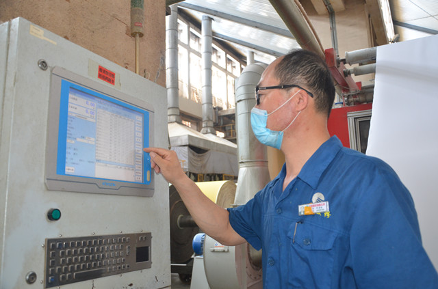 生產(chǎn)一線操作員工在查看機(jī)臺(tái)能耗及工藝執(zhí)行情況