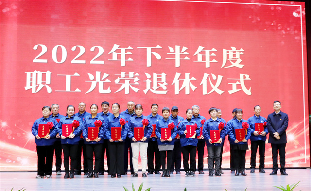 會上,公司黨委委員、人力行政總監(jiān)孫玉濤宣讀了2022年下半年度退休職工工作簡歷,盛守祥為退休員工代表頒發(fā)榮譽(yù)證書。退休員工劉志軍代表29位退休同志做表態(tài)發(fā)言。他表示,華紡陪伴和引領(lǐng)著我們一路向前,為我們每位員工提供了成長的平臺,退休是人生新階段的開始,會努力保持樂觀的心態(tài),繼續(xù)關(guān)注和支持華紡事業(yè)的進(jìn)步與發(fā)展,并努力為公司發(fā)展、社會進(jìn)步做力所能及的事情。