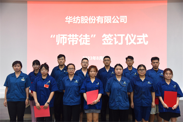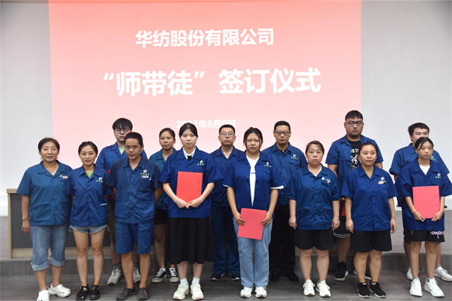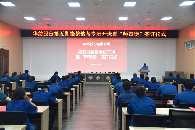 導(dǎo)讀:8月9日,公司舉行第五期染整技術(shù)儲(chǔ)備人才專班開(kāi)班暨“師帶徒”簽訂儀式。