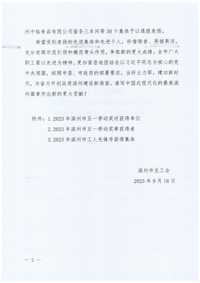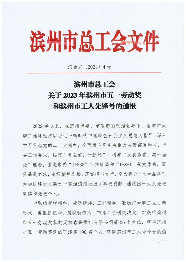 導讀:近日,濱州市總工會發(fā)布了“關(guān)于2023年濱州市五一勞動獎和濱州市工人先鋒號的通報”,