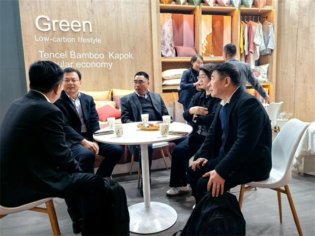 展會首日,中國紡織工業(yè)聯(lián)合會副會長楊兆華等領導專程到華紡股份展位參觀指導。領導們認真聽取了家紡公司總經理成汝海對家紡產品的介紹,仔細觀看了解了各類展品。楊兆華副會長對華紡股份有限公司在產業(yè)升級、產品結構調整方面取得的成績給予了充分肯定,希望公司繼續(xù)加大研發(fā)投入,提升產品科技含量和附加值,進一步加強品牌建設,提高中國家紡產品在國際市場的知名度和影響力。