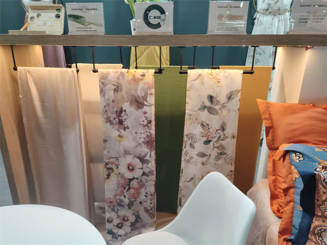 此屆法蘭克福家紡展,華紡股份家紡分公司打造了以“Green world”為主題,以綠色環(huán)??沙掷m(xù)的特色纖維產品為主材質,研發(fā)了醋酸系列/真橙系列/木棉系列/絲質系列/超柔系列/麻系列六大系列產品,從材質、功能、膚感、科技、花型、款式等多方面對產品進行了融合升級,吸引了來自法國、意大利、葡萄牙等諸多國家的客戶進入展位進行咨詢洽談!其中,迎合歐洲市場喜好的亞麻、漢麻提花、色織簡約條紋產品也成功吸引了來自歐美的客戶。