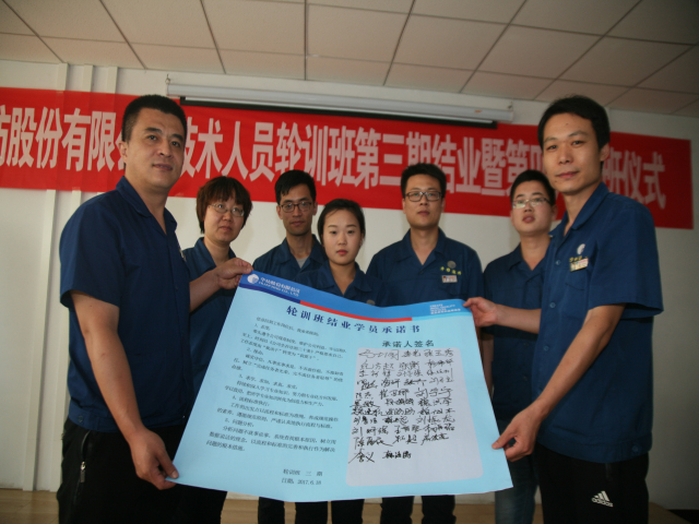 6月18日,公司技術(shù)人員輪訓(xùn)班第三期的35名學(xué)員正式結(jié)業(yè)。輪訓(xùn)結(jié)束后,他們將回到各自工作崗位,把輪訓(xùn)期間所學(xué)知識(shí)運(yùn)用于專業(yè)技術(shù)實(shí)踐當(dāng)中。為做好一名專業(yè)技術(shù)人員的本職工作,他們分別在承諾書上簽下各自的名字,從態(tài)度、使命、學(xué)術(shù)作風(fēng)、流程標(biāo)準(zhǔn)和問(wèn)題分析等五個(gè)方面做了鄭重承諾。他們表示,在承諾書上簽下自己的名字,等于是表明從“我該干”為“我要干”的態(tài)度的轉(zhuǎn)變。