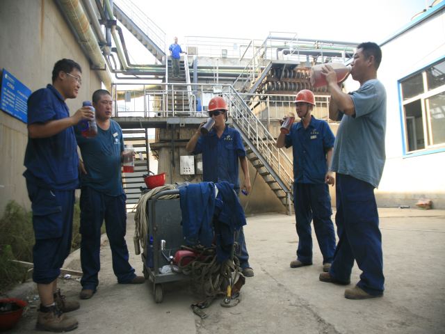 公司污水處理改造工程近來正在緊鑼密鼓地推進,大家盯靠在現(xiàn)場,實在太渴了,就咕咚咕咚喝一通綠豆湯。他們的目標是:保質(zhì)保量,全力投入,爭取提前完成這項重點工程。